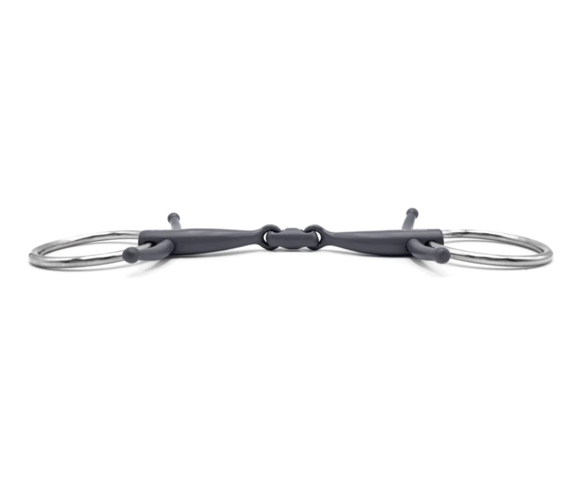 The joints are rotated away from the tongue, which gives a more gentle, smooth pressure on the tongue. This can be good for horses that can overreact when you take the reins and need to keep the consistent contact through every movement. The lightweight material lets you keep a light feeling in the hand.