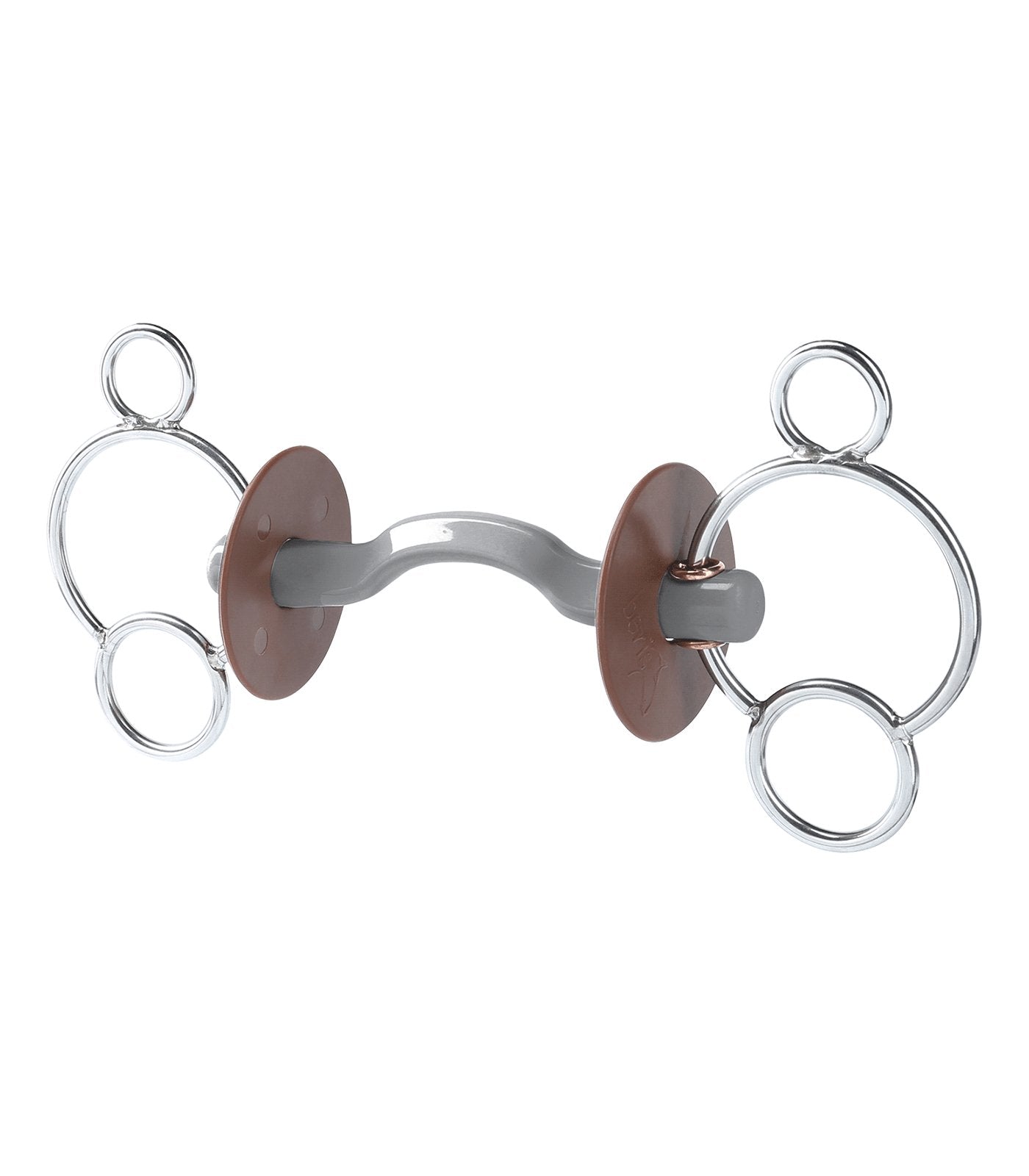 Providing the combined effect of a port and the positive characteristics of the butterfly bar, the profile of the beris KONNEX bar is slimmer and it positions itself very comfortably in the horse’s mouth. There is also more room available as the port in the beris KONNEX bar is significantly wider. Suitable for horses with little space in the mouth e.g. thoroughbred types or older horses (due to change in tooth alignment), horses with large tongues and, in particular, ones sensitive to pressure points on the tongue. The 3 ring bit combines an effective lateral restriction, lever and elevator action in one. The degree of effect is selected by the different buckling possibilities for the reins. Buckled onto the bottom ring, taking up the rein exerts the effect of a short lever. The 3-ring bit is often used to test the horse"s reaction to a lever effect.