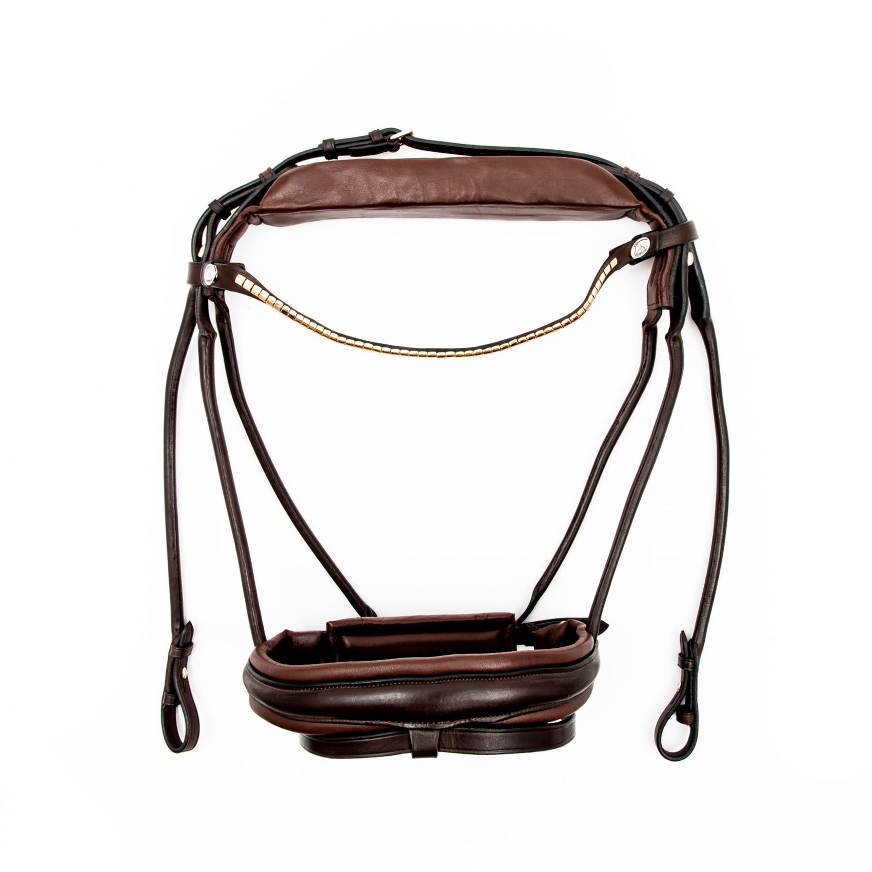 Finesse Snaffle Bridle Brown on Brown with Gold Browband
