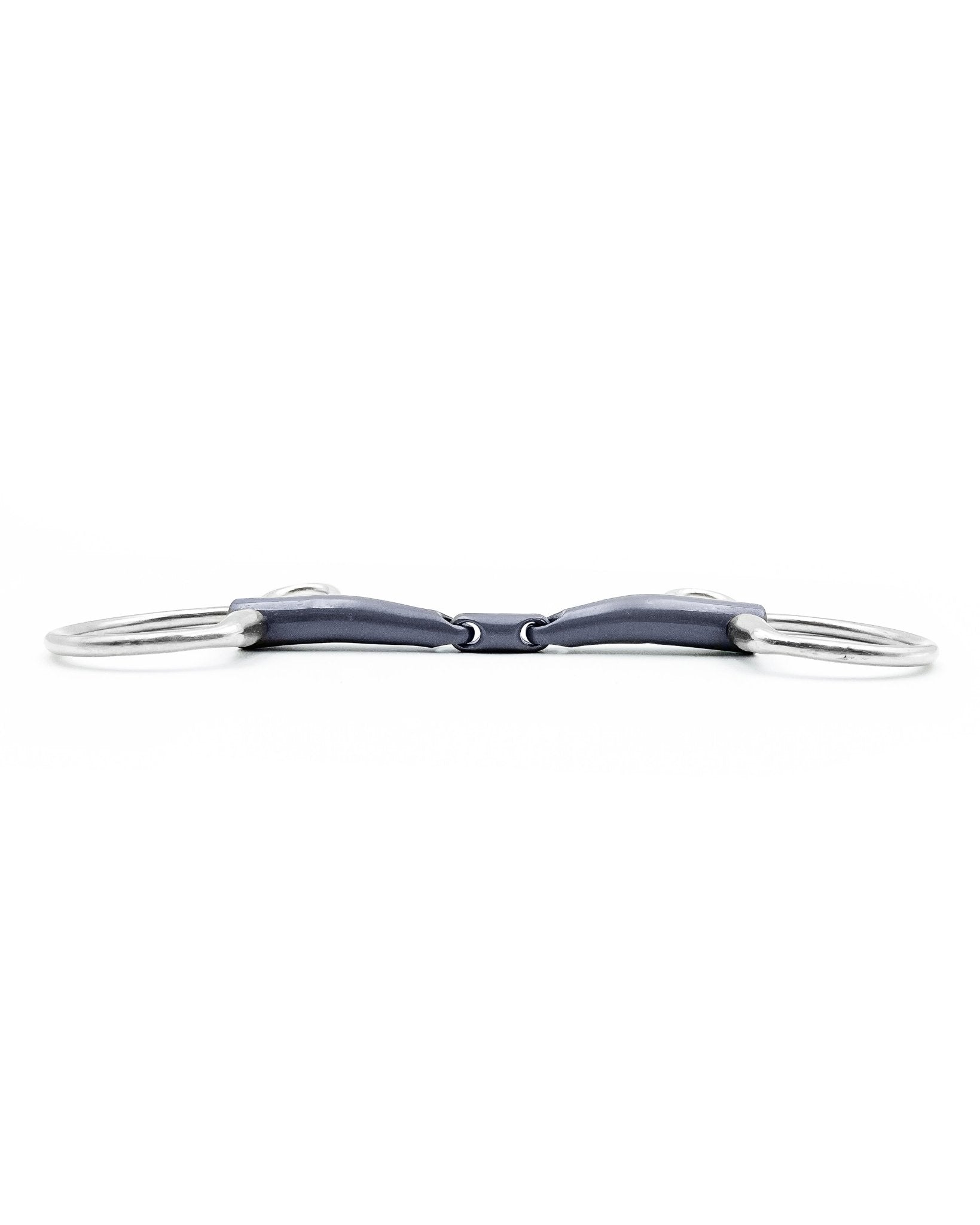 Emil is a durable and lightweight, double-jointed Titanium Snaffle. The design is simple, unique and designed with the horse’s ultimate comfort in mind.  The whole of the bit surface, including the joints is 100% smooth allowing complete fluidity and freedom in the mouth.