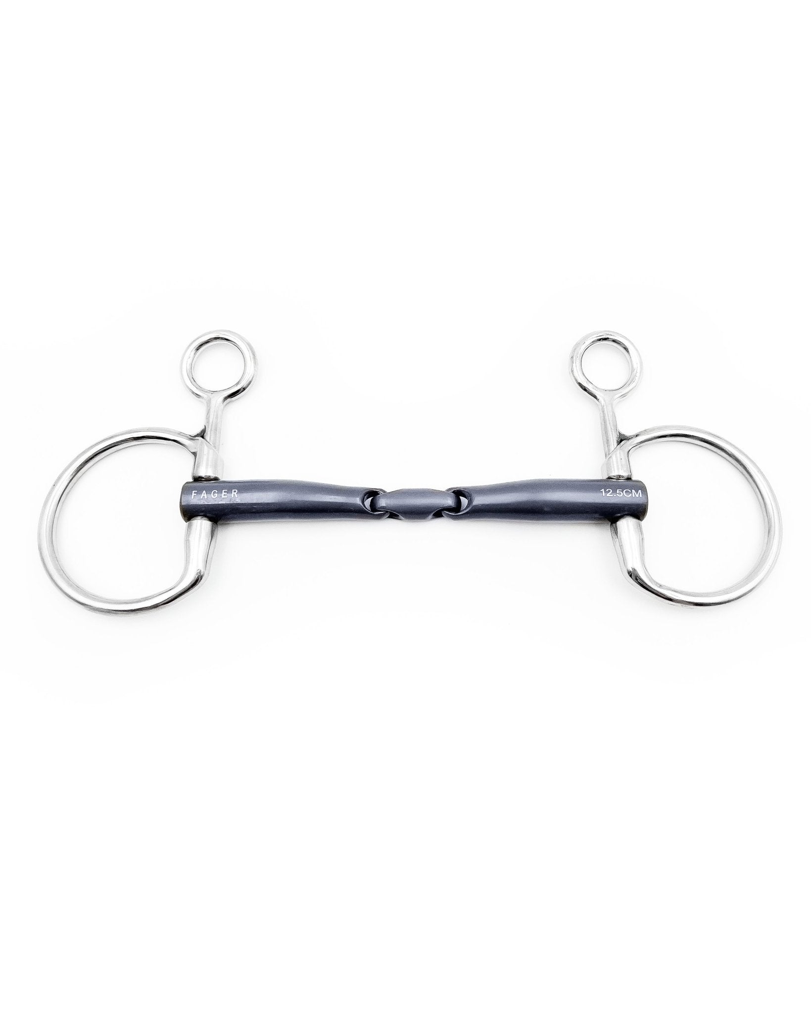 At Fager we design our bits to always sit horizontally straight, there is never a bigger bend forward. The reasoning behind this is to ensure that the bit maintains the correct balance point (BP) in the mouth, creating stability and clear communication for the horse.  When a bit creates a bigger bend forward, it also moves the BP forward, detrimentally reducing the effectiveness of the aids