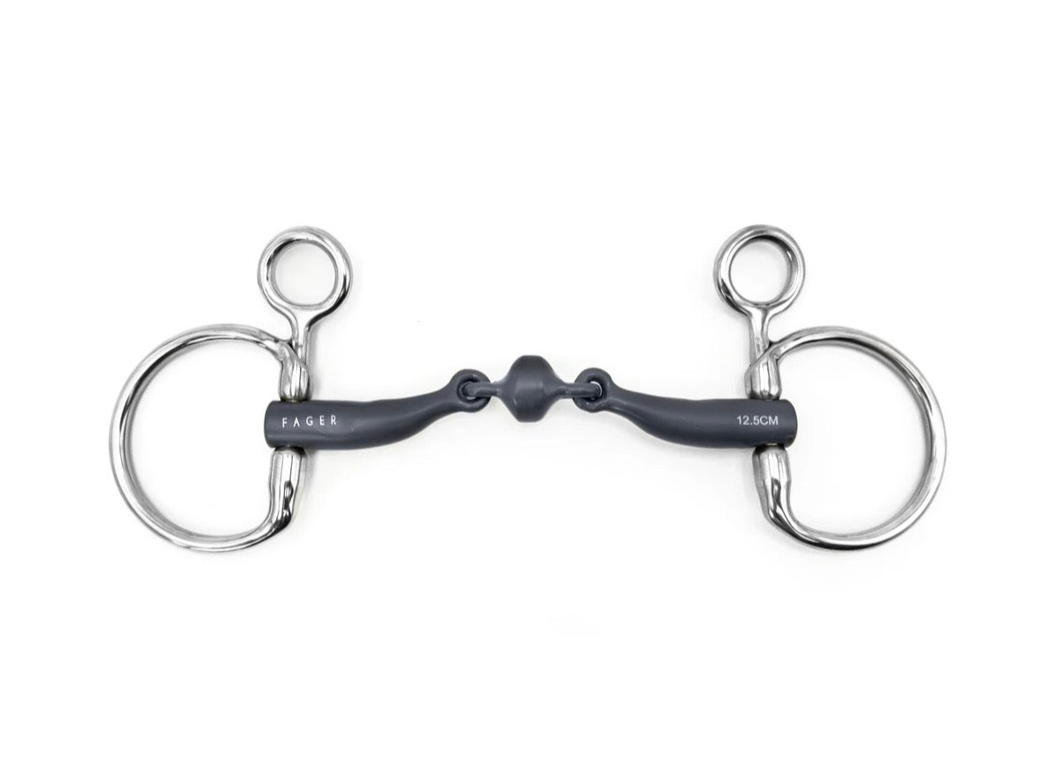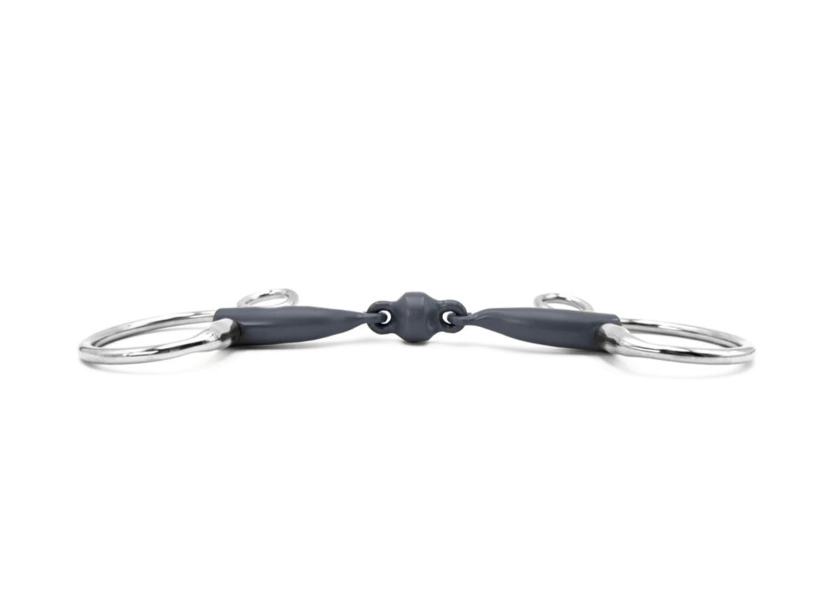 The large middle piece is cleverly designed to be positioned lower than the joints to increase the point pressure on the tongue. This creates pressure when your horse pulls or feels heavy in your hand to help get a lighter feeling.