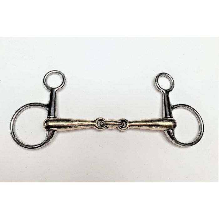 The mouth piece is made of three sections and is ergonomically shape to provide comfort. It also features a 90% copper mouth piece to help promote salivation and acceptance of the bit.