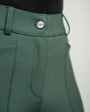 Designed with beautiful details, creased lines in front, mid-high waist with fake back pockets for a classic, dressed look. Stretchy, breathable fabric for maximum comfort.