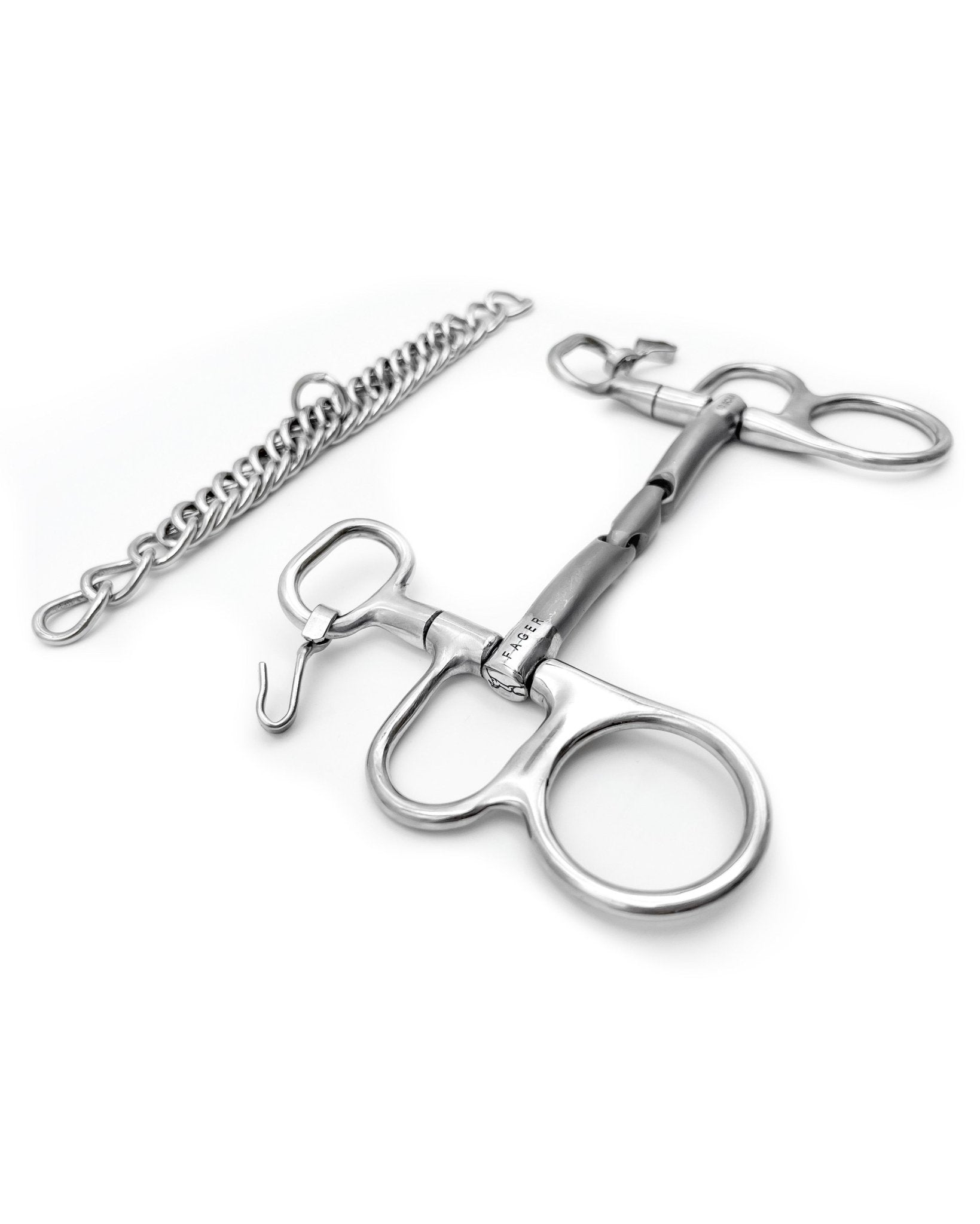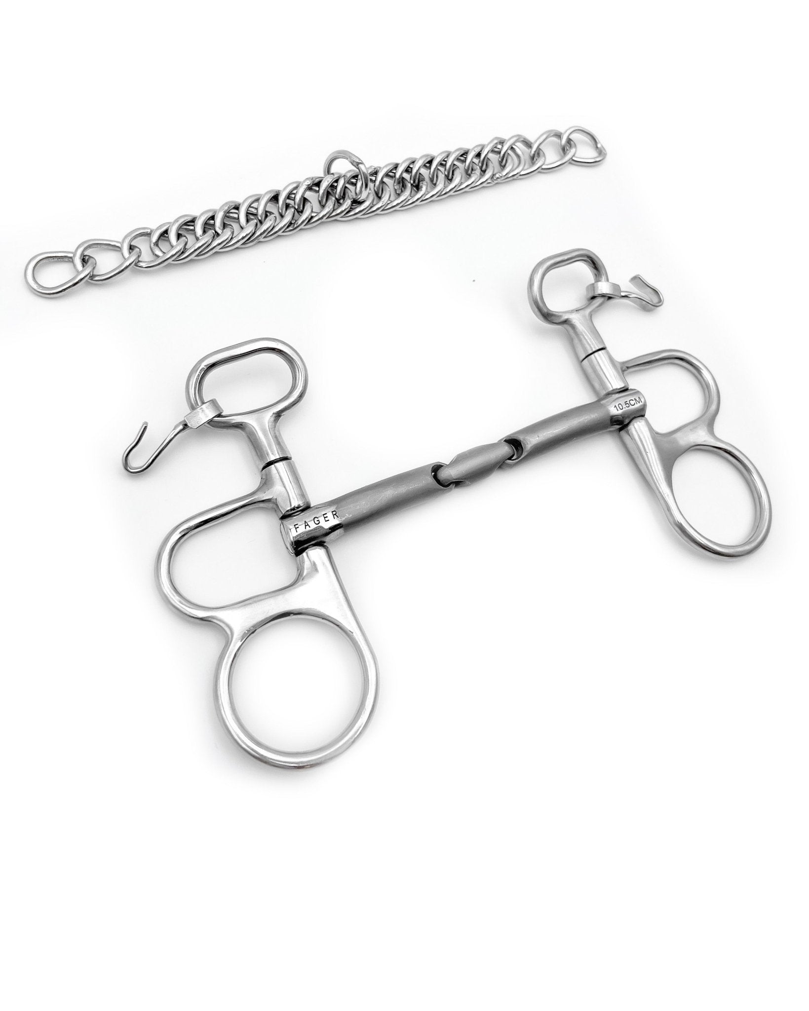 Fager Lucas is a Double-Jointed Butterfly Driving bit, sometimes used as a Jumping Bit too. Our bits are designed to have a 100% smooth surface, including around the joints. The joints are designed and constructed to ensure they never push against the palate or sit on top of the bars. All these clever features result in an extremely comfortable bit which naturally fits the contours of the tongue.