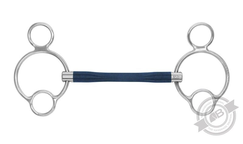 Especially good for the horse that objects to metal or when you have tried every kind of bit without luck. The internal flexible stainless-steel cable core has been injection moulded with a bespoke non-toxic, UV resistant, FDA approved flexible synthetic material. The Bombers moulded material has been uniquely developed to ensure 3 key attributes: texture, durability and comfort. As with all Bombers’ steel components, the cable core and cheek piece will be covered by their lifetime guarantee. Bomber’s latest development is made with a rubbery texture that can sustain some chewing. It is designed to give accepted spread tongue pressure with minimal bar pressure. Recommended for the sensitive fussy mouth or where there is bar damage. The Bombers Lifetime Guarantee does not extend to materials that can be chewed