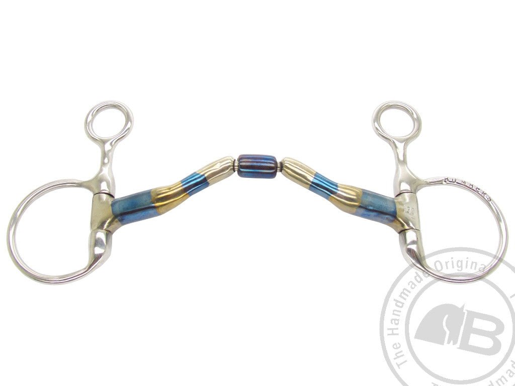 The Ported Barrel was created to relieve pressure on the tongue via the medium port, which creates space for the tongue. The Barrel joint relieves pressure on the bars by spreading it over a larger area and limiting the nut cracker action of a conventional snaffle.