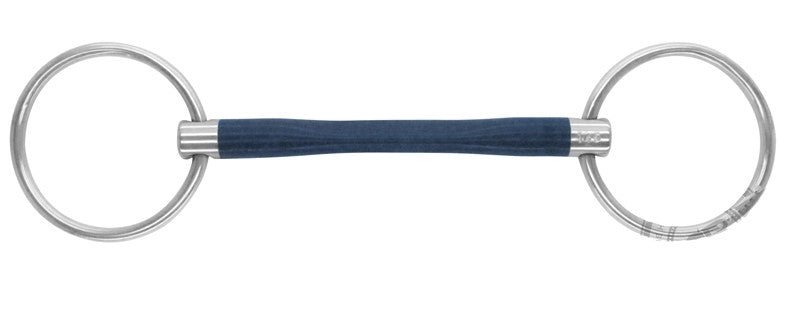 Especially good for the horse that objects to metal or when you have tried every kind of bit without luck. The internal flexible stainless-steel cable core has been injection moulded with a bespoke non-toxic, UV resistant, FDA approved flexible synthetic material. The Bombers moulded material has been uniquely developed to ensure 3 key attributes: texture, durability and comfort. As with all Bombers’ steel components, the cable core and cheek piece will be covered by their lifetime guarantee. Bomber’s latest development is made with a rubbery texture that can sustain some chewing. It is designed to give accepted spread tongue pressure with minimal bar pressure. Recommended for the sensitive fussy mouth or where there is bar damage. The Bombers Lifetime Guarantee does not extend to materials that can be chewed