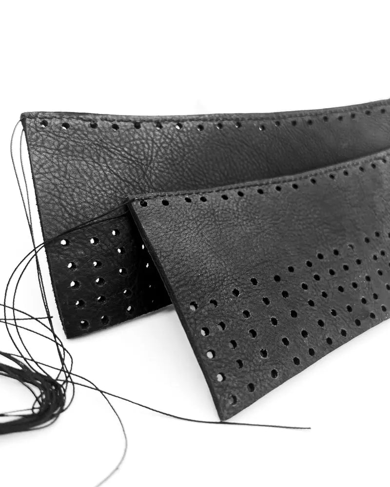- Wrap the leather around the bit to measure the correct width. Cut accordingly.