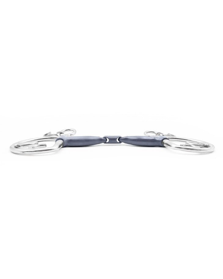 Maria’s joints are designed to never press against the sides of the palate or create uneven pressure over the bars. It is an extremely comfortable bit which contours naturally around the tongue, relieving the bars from constant pressure.