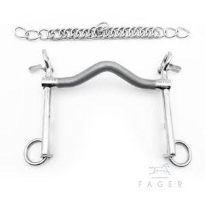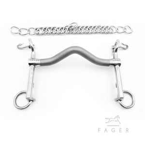 Philip's mouthpiece is a comfortable, high ported, back angled Weymouth in Grey Sweet iron.