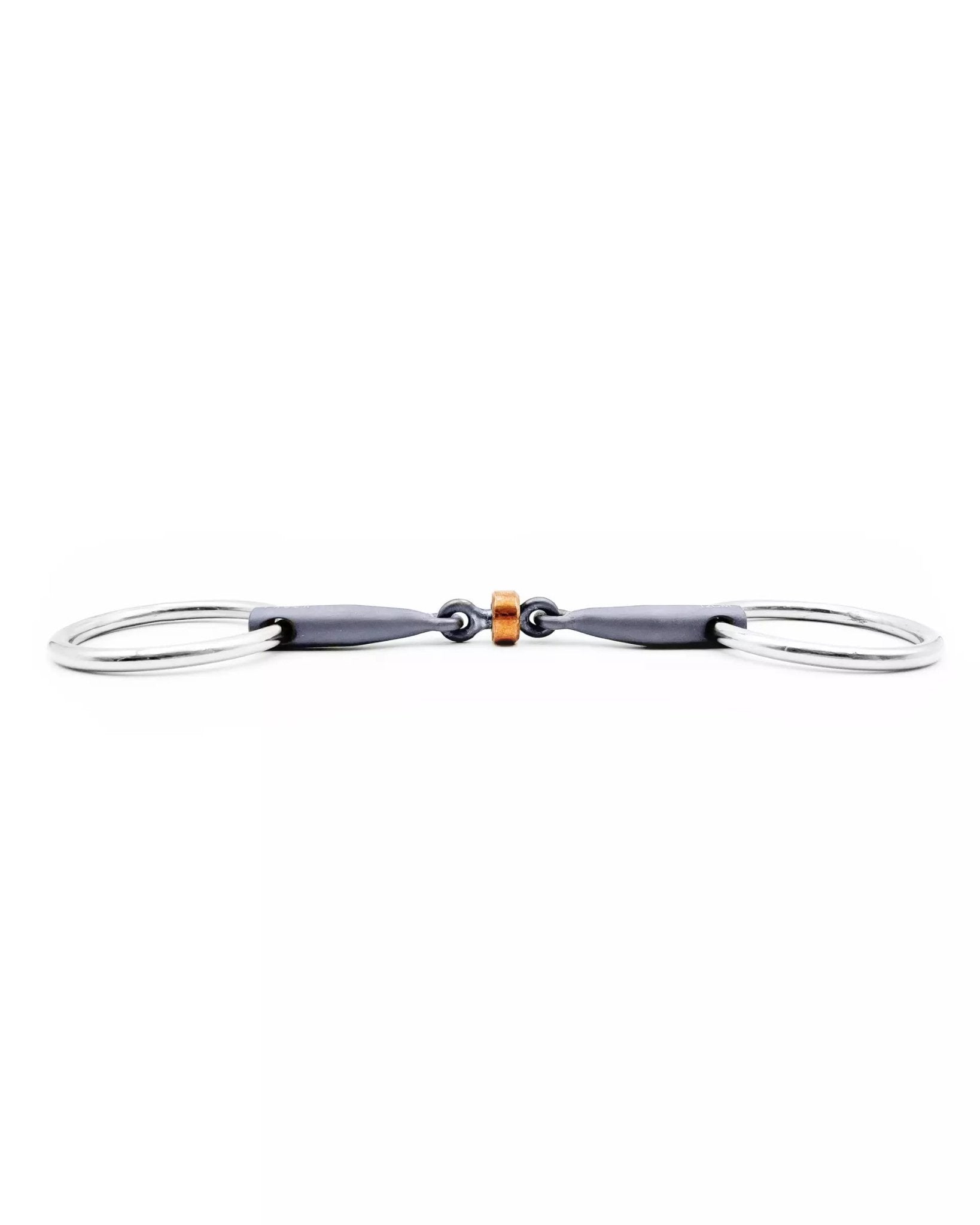 The anatomical shape of the mouthpiece follows the natural contours of the mouth, dispersing the pressure evenly between the bars and tongue. This specific design has proven extremely comfortable, particularly for those horses with a large, fleshy tongue.