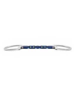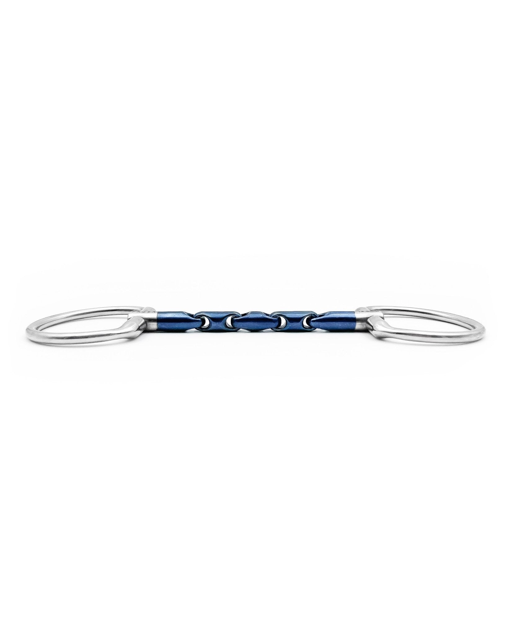 It is a flexible bit that molds around the horse’s mouth, creating even pressure. It is moveable in all directions which prevent the horse to lean or take hold of it, giving the rider a softer feeling in the hand.