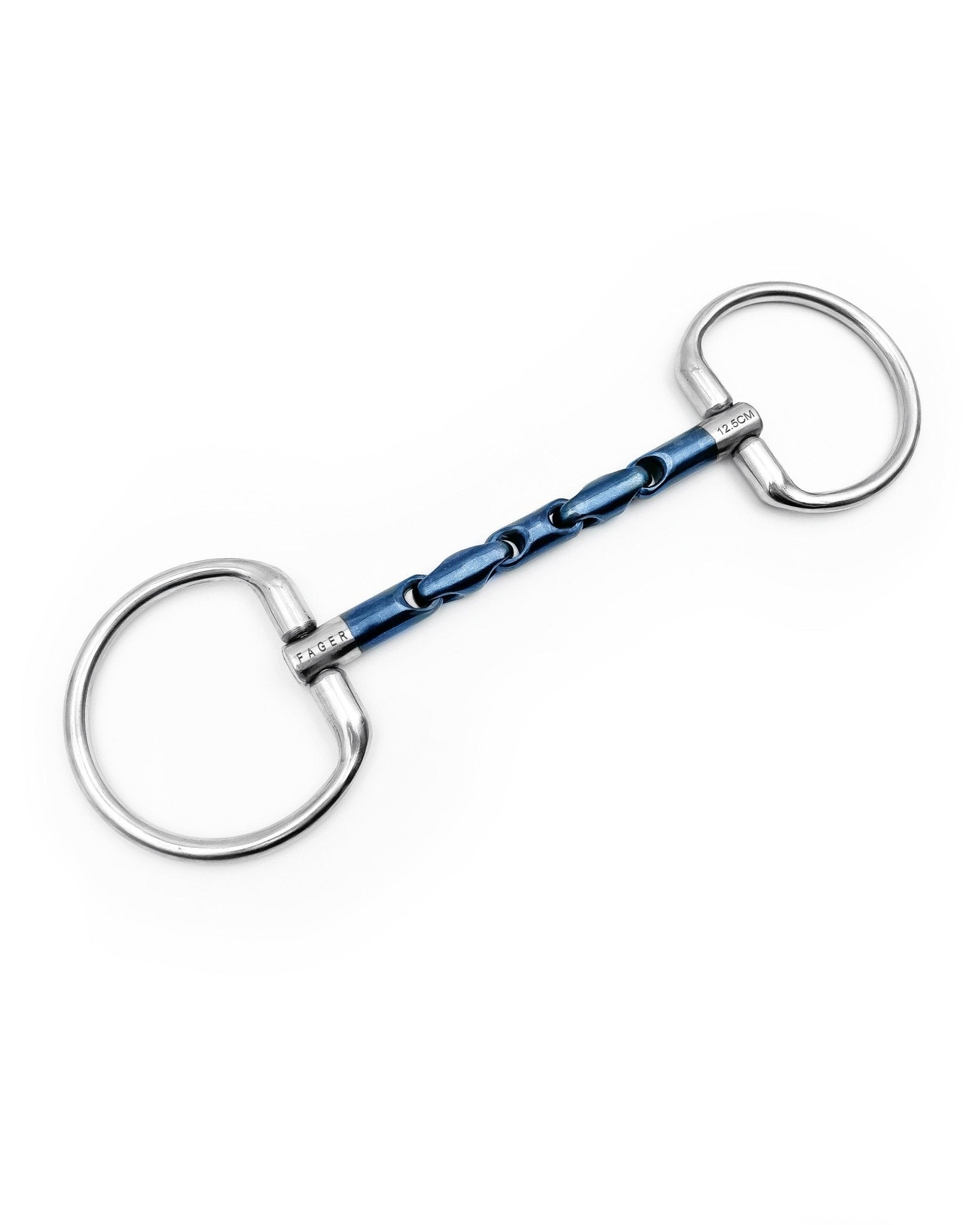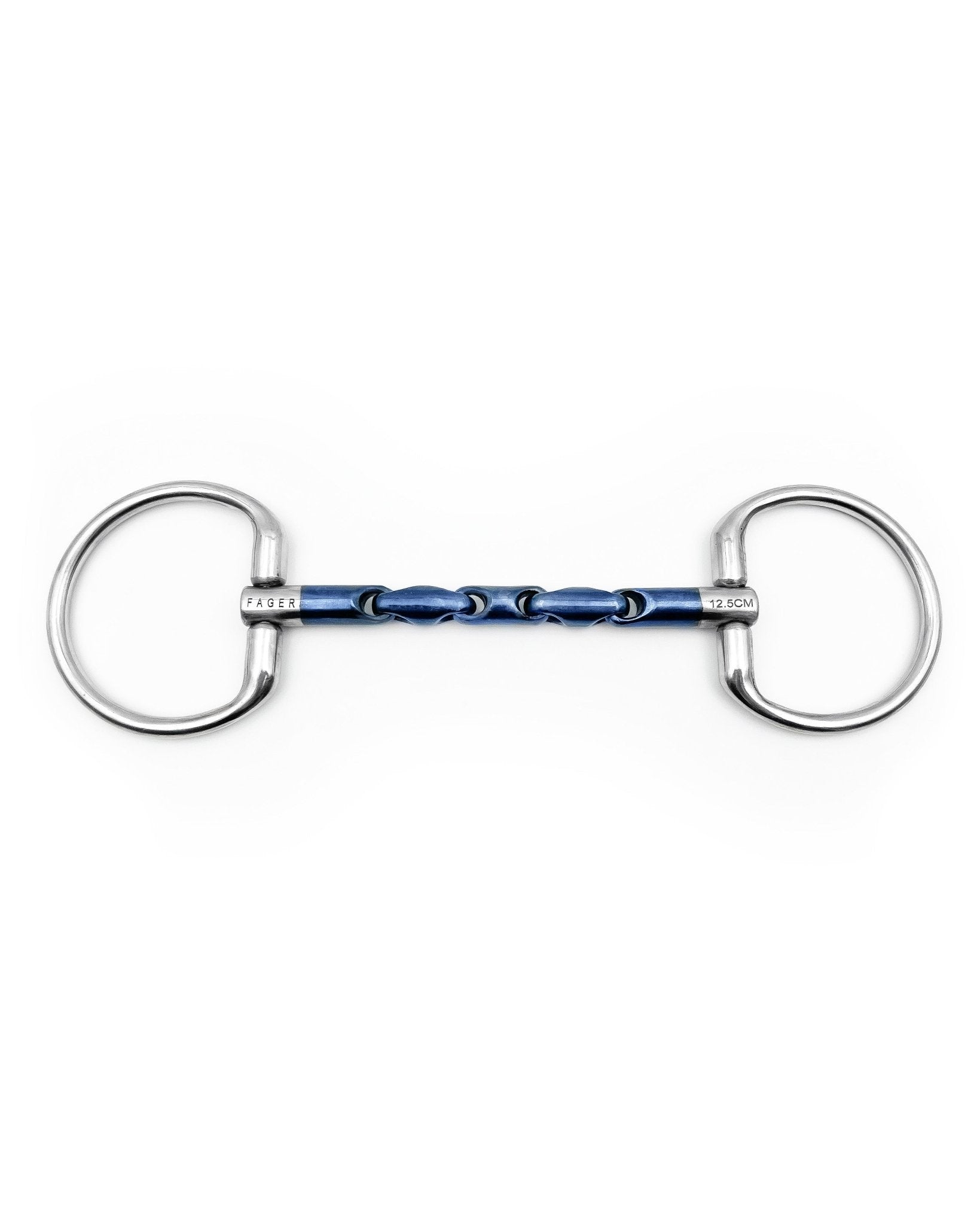 Fager’s designs are always designed to sit horizontally straight, never allowing a bigger forward bend. We design them this way to maintain the balance point (BP) in the mouth. A bigger bend forward moves the BP forward, slowing down the effectiveness of the aids. This design creates stability for the horse enabling clear communication. The unique design also protects the bars and mouth against cuts, sores, and rubs, even on sensitive horses.