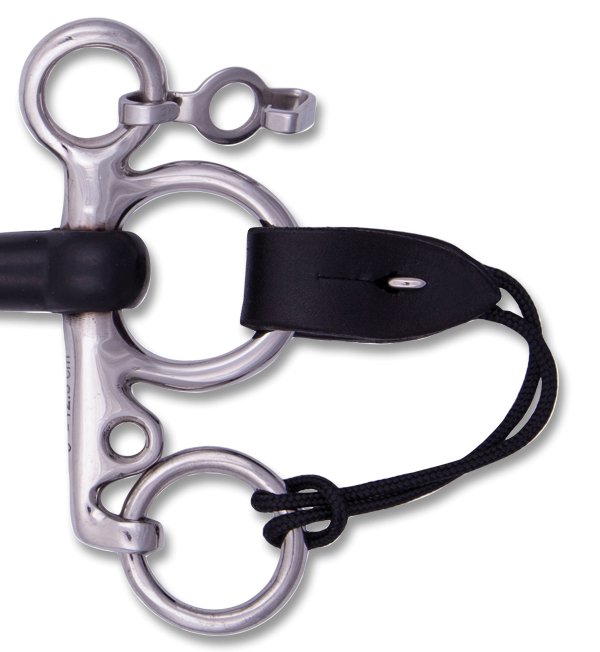 Much lighter and easier to attached the Pelham Converters are only 15cm in length (in comparison to the usual Pelham straps which are generally 30cm) and made from fine webbed nylon rope which loops around the bottom ring and the leather strap with billet is fixed to the top ring. The reins are then simply attached to the new loop. The action from using the rein is much more direct and clear and also much quicker with a lot less play.