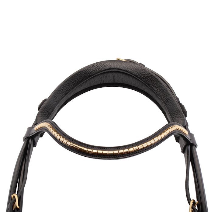 The weight of the bridle is taken comfortably on a wide and padded headpiece that is anatomically shaped for optimal pressure relief.