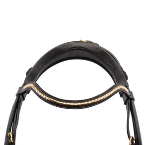 The Olympic Dressage Bridle has a generously padded noseband with knitted details.